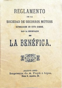 Alcoi – Reglamento La Benéfica – Sociedad Socorros Mutuos – Febrero 1882 –