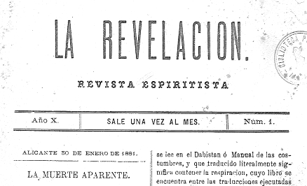 2LAGIER: Las Dominicales 02-12-1883. Parece ser que Lagier fue quien introdujo el espiritismo en la península algunos años antes del sexenio democrático, y se concretó en La Revelación, revista editada en Alicante entre 1872 y 1904. Prueba de la importancia del espiritismo en la ciudad de Alicante fue el Centro Kardeciano que permaneció activo entre 1920 y 1938. Ver, Las Dominicales 05-10-1894.