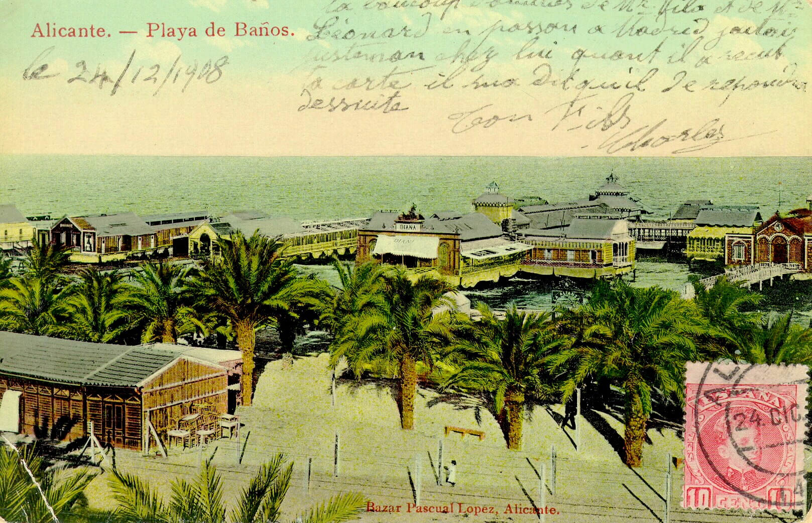 Playa de baños Alicante_Postal 1908_Bazar López Alicante