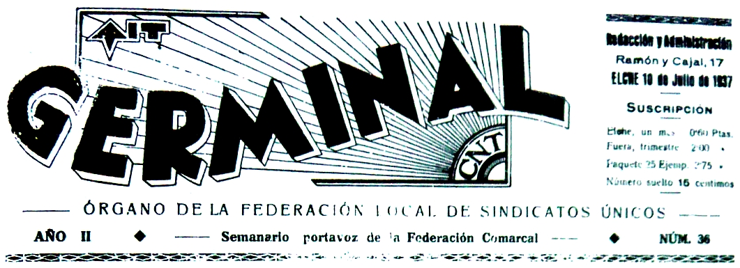 CABALLERO, MARCIAL: Colabora en Germinal, 1937.