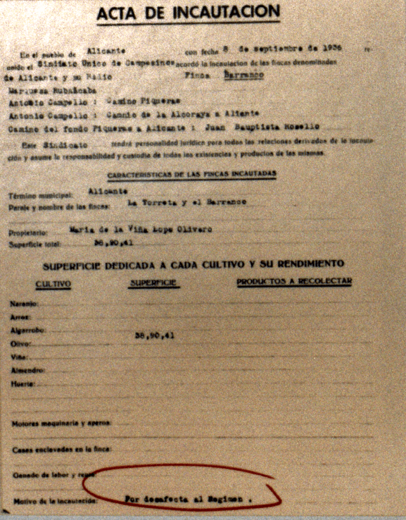 DEVESA LLINARES, MIGUEL: Labrador de La Nucía, afiliado a la CNT en los años republicanos. Después del 19 de julio, delegado del Consejo de Agricultores de la Colectividad Confederal de Trabajadores Campesinos-CNT de La Nucía.