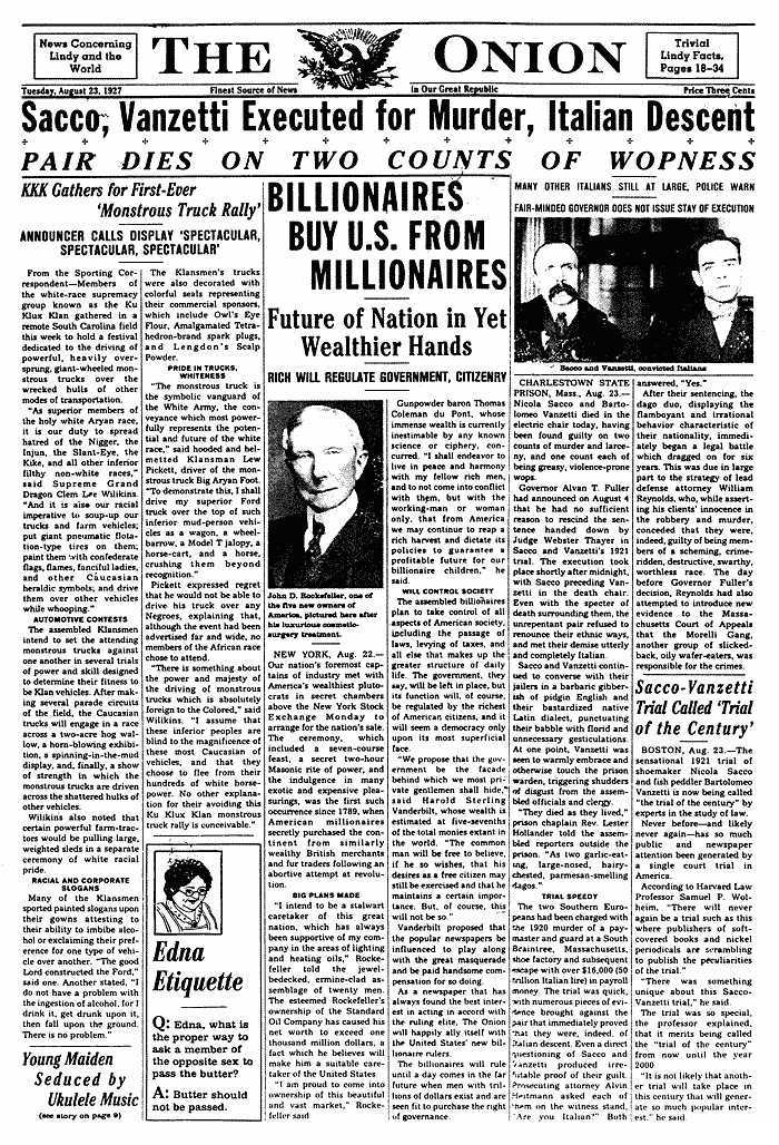 El 23 d’agost de 1927, malgrat la impressionant mobilització i reprovació internacional sense precedents, Nicola Sacco i Bartolomeo Vanzetti són executats a la cadira elèctrica de la penitenciaria de Charleston. Celestino Madeiros, delinqüent comú i autor confés de l’assalt de South Braintree que va donar lloc al processament dels anarquistes, també serà electrocutat. La notícia de les execucions desencadenarà de bell nou un intens moviment de rebuig i violència contra el govern nord-americà. El dia de l’execució 250.000 persones es van manifestar a Boston.