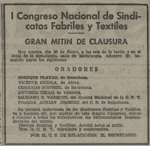 ORDOÑEZ FERNÁNDEZ, MANUEL: Vocal en nombre de la FAI de la Secretaría jurídica del Frente Popular Antifascista de Alicante en mayo de 1938.