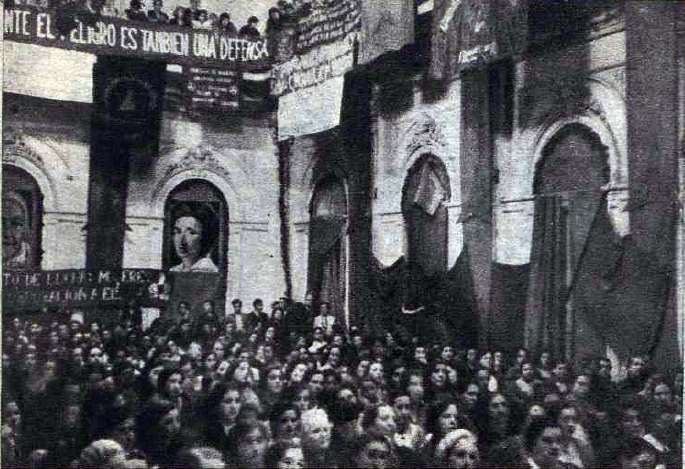 SOLER, CARMEN: [1854]. Revolucionaria, feminista y librepensadora en el Levante peninsular durante el último cuarto del siglo XIX y el primer tercio del siglo XX. Siendo una adolescente, 19 años, se involucró en las jornadas revolucionarias de la república federal. Luego fue miembro del grupo librepensador Paz de Alicante y se unió libremente el alicantino Antonio Aragonés, que fallecería en 1901. Un tiempo antes, 1899, la situamos ya en Valencia, entre las fundadoras de la sociedad feminista El Bien del Obrero, de la que sería su primera presidenta. Su implicación en la educación laica llegó más lejos, y por ejemplo consta como vocal de la Primitiva sociedad de Instrucción Laica en agosto de 1902. Por entonces tenía una niña de 10 años, Emma Antonia. También fue profesora de la Escuela Nueva de la sociedad Unión Obrera del Puerto, al menos entre 1910 y 1914. Con la llegada de la República aparece ligada al Centro Democrático Federal del distrito del Puerto, luego en la junta municipal de Izquierda Federal, octubre 1936. También asistiría a la II Conferencia de Mujeres Antifascistas celebrada en Valencia en noviembre de 1937, que se muestra en la imagen, donde pronunciaría un discurso en la sesión de clausura.