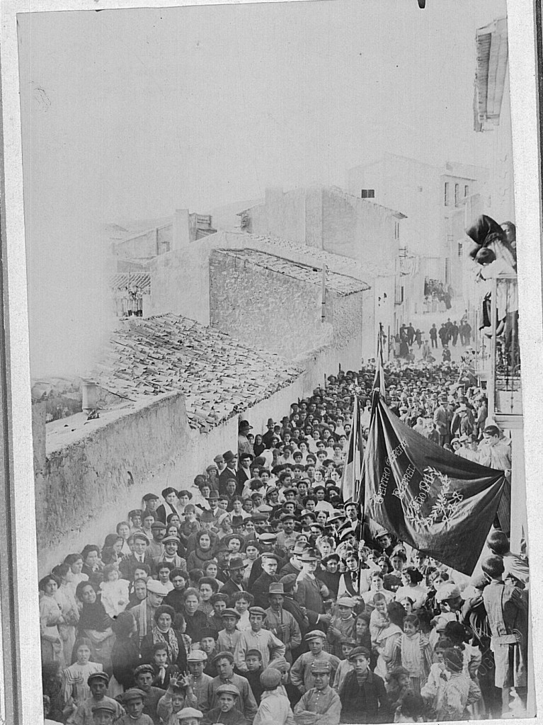 El 18 de enero de 1918 estalló en Alicante el llamado Motín del Hambre que, tras los enfrentamientos entre el pueblo y las fuerzas de la autoridad, dejaron en las calles a 3 jóvenes muertos: Antonio Jover Pastor de 19 años, Ramón …Giner Ronda, de 14 y Emilio Espuch Pastor, de solo 12 años. Al día siguiente las sociedadas obreras declararon la huelga general en señal de duelo y como protesta por la actuacion del gobernador, a quien se exigía la dimisión. Más allá de los hechos concretos, meros detonantes de un problema de mayor calado, podemos considerarlos como el desborde de la tensión largos meses acumulada en los barrios obreros de la ciudad, “El hambre asoma su faz siniestra por todas partes. Se carece de trabajo. Empujados por la necesidad, llegan a las capitales los habitantes de las poblaciones rurales en demanda de faena..”, Alicante Obrero, 18 de enero de 1915. Este estallido social de enero de 1918, en verdad fue la réplica de otros motínes similares que días antes habían estallado en Málaga, Madrid o Barcelona. Aquella jornada de ira y sangre en las calles de Alicante fue la última de una larga seríe de las que, ciclicamente brotaron de una manera tan espontánea como previsible. Este tipo de motines, iniciados por lo general por la rebeldía ciega del pueblo ante la privación y la injusticia, tuvo con frecuencia derivas interclasistas, es decir, susceptibles de contagiarse a otras grupos sociales y de ser manipuladas por intereses politicos y electorales; y en nuestra provincia estallaron casi todos ellos entre 1893 y 1918, presentando dos modelos diferenciables. Uno fue el predominante durante la década de los 90, cuando solían ser los jornaleros quienes quemaban fielatos de consumo (como sucedió en Aspe, Novelda, Pinoso, Monòver..) y apedreaban la casa del alcalde al grito de Viva la República!; y otro aquel que, con similares motivaciones, era iniciado mayormente por mujeres, seguido por sus maridos al grito de Pan y Trabajo!; pero que tenía ahora como principal objetivo a colmados y tahonas o la presión sobre las autoridades para solucionar el problema del abastecimiento de subsistencias, algunos de cuyo primeros ejemplos fueron los asaltos a panaderias en la campiña cordobesa de la primavera de 1905, o incluso el que se produjo en el mismo Alicante el 2 de enero de 1906, con el resultado de 2 muertos, o también el protagonizado por las alcoyanas a finales de julio de 1909, aunque en este caso cobrara tintes antimilitaristas, “..estalla el motín del Hambre, la paz se perturba en otras partes y los horizontes del país se entenebrecen cada vez más, no estando lejano el día en que hasta las piedras se levantarán contra un gobernante tan nefasto..”, Heraldo de Alcoy, 11 de marzo de 1904. En la imágen adjunta, la manifestación del día del entierro que congregó a unas 10 mil personas y la conmemoración publicada por un conocido periódico local años después: “El Tio Cuc dedica un recuerdo per el descans de les pobres criatures que demanaven pa i els van donar pa i companache pa tota la vida..”.