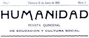 El 15 de junio de 1912 apareció en Valencia Humanidad, revista quincenal de educación y cultura social con base intelectual racionalista-anarquista y sin comentarios sociales, dada los agitados sucesos de septiembre de 1911, y se puede considerar una evolución en la serie de revistas pedagógicas que se editaban en la ciudad desde años atrás.“Por amigos nuestros entendemos a todos los que combaten al actual estado de cosas, ya en la totalidad de las misérrimas instituciones y mentiras que lo integran, ya parcialmente impugnando esta o la otra institución, este o el otro priviliegio.” Sin embargo, no pudo resistir el ambiente de apatía que cada vez más se adueñaba de la clase trabajadora por lo que se refiere a estas experiencias pedagógicas. Falto de apoyo económico desapareció antes de acabar el año.