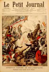 Arrivada la matinada del 1 de juny de 1905, al carrer Rivoli de París, una bomba és llançada contra el seguici oficial del president de la República francesa Émile Loubet i del seu hoste, el rei d’Espanya Alfons XIII, quan sortien del Teatre de l’Òpera. Ells sortiran indemnes, però l’explosió fereix 15 persones i mata un dels cavalls de l’escorta. Tot i que el responsable, mai no va ser detingut; el 27 de novembre de 1905, quatre anarquistes, entre ells Charles Malato i Pedro Vallina, seran jutjats per complicitat en l’atemptat, encara que seran finalment absolts. L’autor material, un anarquista espanyol arrivat de Barcelona, que responia al nom fals d’Alexandre Farrés o Farras, va poder ser, un anarquista valencià anomenat Francisco Ferrer/Acracio Progreso, molt amic de l’estudiant Vallina. Però el seu nom real, era Fernando Vela. [+]