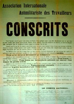 El 28 de juny de 1904, a Amsterdam, el Congrés Internacional Antimilitarista, que havia començat el 26 de juny, crea una nova organització, l’Associació Internacional Antimilitarista. Els anarquistes francesos hi seran fortament representats: George Yvetot i Miguel Almereyda, cofundadors en 1902 de la Lliga Antimilitarista, seran els secretaris de la secció francesa, però alguns companys com Libertad i Paraf-Javal, van jutjar força timorat la simple crida a la deserció com a mitjà d’acció, van deixar l’organització i no prengueren part en l’AIA, que amb tot i això s’escamparà a França amb la creació d’un centenar de grups. En aquest congrés Émile Armand va presentar la ponència «Rebuig del servei militar». Però en 1905, després de la publicació d’un cartell adreçat als conscrits, 28 membres de l’AIA van ser processats del 26 al 30 de desembre de 1905 i 26 seran fortament condemnats, especialment Gustave Hervé (quatre anys) i Yvetot i Almereyda (tres anys). Però finalment les condemnes seran amnistiades amb motiu del 14 de juliol de 1906. El segon congrés de l’AIA va tenir lloc el 30 i 31 d’agost de 1907 també a Ámsterdam.