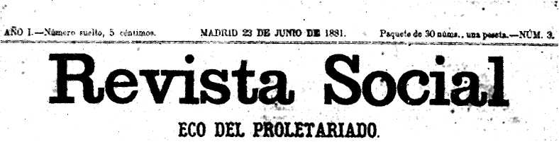 L’11 de juny de 1881 surt a Madrid el primer número del setmanari Revista Social. Eco del proletariado. Dirigit per Juan Serrano Oteiza, va defensar les tesis federalistes proudhonianes i anarcocol·lectivistes i va ser en gran mesura l’òrgan d’expressió de la FTRE. De caire moderat, els editors de la publicació pensaven que calia acabar amb certs radicalismes per construir una organització obrera forta i nombrosa, basada en el legalisme, la moderació i el col·lectivisme com a principi econòmic; tot defensant la línia tàctica mantinguda pels congressos de l’FTRE de 1881 i 1882. Tenia un tiratge de vint mil exemplars, que la convertia en la publicació més llegida i difosa de l’època. Van col·laborar N. Palacio, A. Oreal, M. Arroyo, S. Espí, Vanoncí, Francisco Ruíz, Enric Borrell, Ernesto Álvarez, Federico Urales, José García, Pedrote, Vicente Danza, Francesc Tomàs Oliver, entre molts altres. Tomás González Morago va refusar col·laborar en no estar d’acord amb l’orientació de la publicació. En va editar 154 números, l’últim el del 15 de maig de 1884, i va deixar de publicar-se quan el sector radical va acusar el sector moderat de malversar fons de la publicació. Era hereva de La Revista Social, editada a Catalunya entre 1872 i 1880, i després d’aquesta etapa madrilenya va tornar a editar-se a Catalunya fins a octubre de 1885.