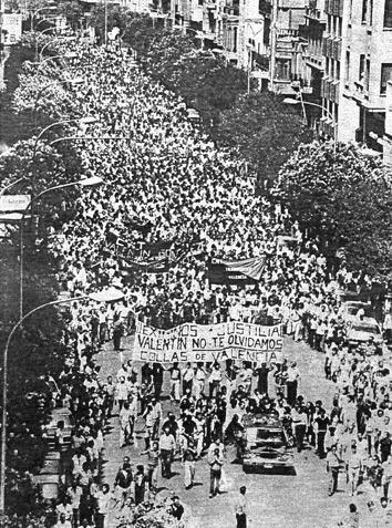 El 27 de juny de 1979 l’enterrament a València del militant cenetista Valentín González Ramírez, assassinat per la policia el 25 de juny, es converteix en una manifestació de milers i milers de persones. Entre 200.000 i 400.000 persones recorregueren els 10 quilòmetres que separen l’Hospital Clínic del Cementiri General de València, portant el taüt del jove anarquista. També es van produir diferents manifestacions llibertàries de protesta arreu l’Estat; a Múrcia la repressió serà ferotge, amb més de vint detinguts. En 1993 es va crear una plataforma que reivindicava que l’Institut d’Ensenyament d’Abastos de València fos rebatejat com Institut Valentín González en memòria de tots els treballadors morts durant la Transició.
