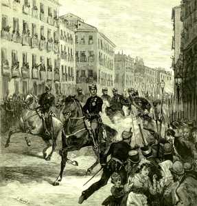 El 25 d’octubre de 1878, al carrer Major de Madrid, l’anarquista Joan Oliva i Moncusí –citat també Moncasí– intenta, sense èxit, assassinar el rei Alfons XII disparant-li dos trets; desarmat per la multitud, és detingut i condemnat a mort. Alfons XII retornava de la seva gira pel nord a cavall i al capdavant del seu Estat Major, però cap de les dues bales va ferir el monarca. L’obrer boter anarquista, membre de la Internacional, Joan Oliva i Moncusí havia nascut a Cabra del Camp el 1855 i es va veure influenciat per les accions dels regicides alemanys. El 4 de gener de 1879 Joan Oliva va ser garrotat, després de rebutjar l’indult, i mostrant una enteresa sorprenent.