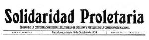 El 18 d’octubre de 1924 surt a Barcelona el primer número del setmanari anarcosindicalista Solidaridad Proletaria. Órgano de la Confederación Regional del Trabajo de Cataluña y portavoz de la Confederación Nacional. Es va publicar per substituir Solidaridad Obrera que, per enèsima vegada, el Govern havia prohibit. Alguns articles van ser retallats per la censura governativa. Destacà el component sindical de l’organització anarcosindicalista, que aleshores volia reorganitzar-se, i combaté els partidaris de prevaler les essències anarquistes en la CNT. La seva missió principal fou intervenir en la lluita ideològica que s’entaulà en la CNT sota la dictadura de Primo de Rivera entre partidaris de l’actuació legal del sindicat i els seus rivals. D’antuvi tenia la redacció a Mataró, però s’imprimia a la tipografia Cosmos de Barcelona. Dirigit per Àngel Abella, comptava en la redacció figures destacades, com ara Ángel Pestaña, Joan Peiró, Arnó i Andrés Miguel, entre d’altres. Hi van col·laborar Joan Arans, P. Martín, Casimir Pla, Joan Servien, etc. Aquesta publicació es va suspendre per decisió del Comitè de la Confederació Regional del Treball de Catalunya a causa de diverses «anomalies», que se suposa fruit de la lluita ideològica apuntada. Se’n publicaren 32 números, l’últim el 23 de maig de 1925.