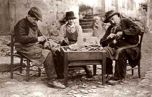 En 1904 “La Unión –que hasta ese momento dedicaba parte de su actividad a los socorros mutuos- decidió separar la sociedad de resistencia de la de ayuda mutua3, hecho que no sabemos si está relacionado con la aparición en ese año de una Sociedad de Resistencia de Maestros Zapateros y de una Sociedad de Socorros Mutuos llamada “La Solidaridad”4. Trabajaban los zapatero a destajo, de acuerdo con una plantilla que distinguía entre calzado de caballero, señora y niños5.