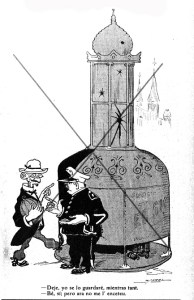 Vigilancia Urinarios Ramblas BCN_Prohibido entrar Bultos_Caricatura censurada Campana de Gracia