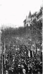 Manifestacion BCN Contra Proceso Montjuich_Entrada calle Fontanella_La Campana de Gràcia 19 febr. 1898