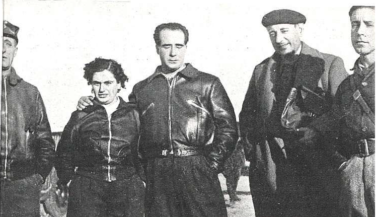 Columna Durruti_Bujaraloz_Pablo Vagliasindi, técnico militar de la columna, la compañera de Ruano, Ruano, Caba y el secretario del Cuartel general, Campón