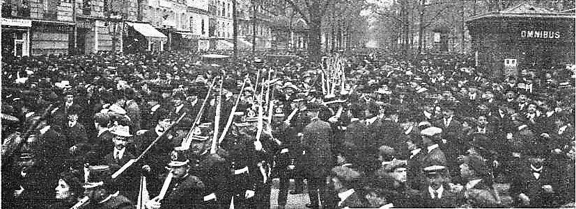 Unas escenas que recuerdan a los choques entre radicales y libertarios ocurridos en el cementerio de Montjuich el día de la manifestación por el carbonero Ramón Clemente García, octubre de 1910, coincidiendo con el primer aniversario del fusilamiento de FG.