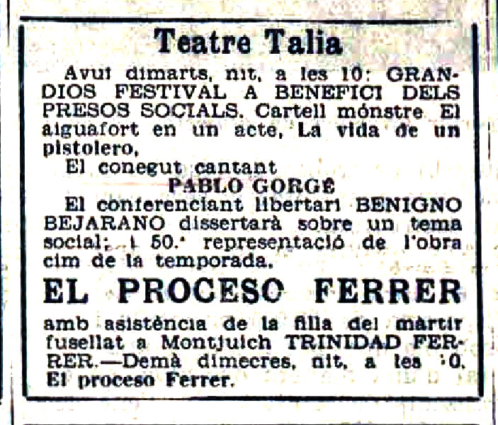 Anuncio estreno obra El Proceso Ferrer_1931