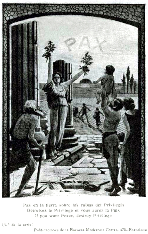 Postal_Fermín Sagrista_La Paz triunfará sobre las ruinas del privilegio_Casa editorial Escuela Moderna_1912