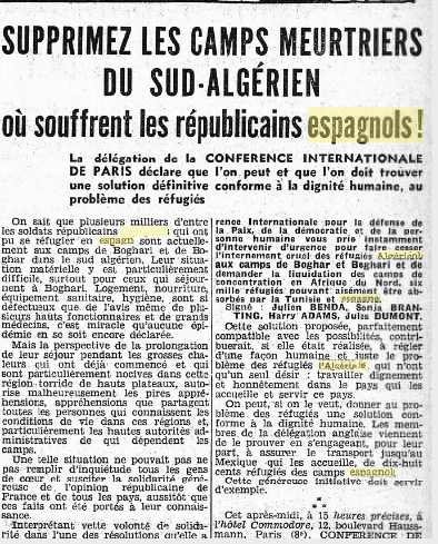 El COMITÉ INTERNATIONAL DE COORDINATION ET D INFORMATION POUR L´AIDE A L´ESPAGNE REPUBLICAINE, mando dos misiones internacionales a visitar los campos de refugiados en Mayo 1939. El doctor Weissmann Netter visito los centros de internamiento de Oran y campos de concentración.