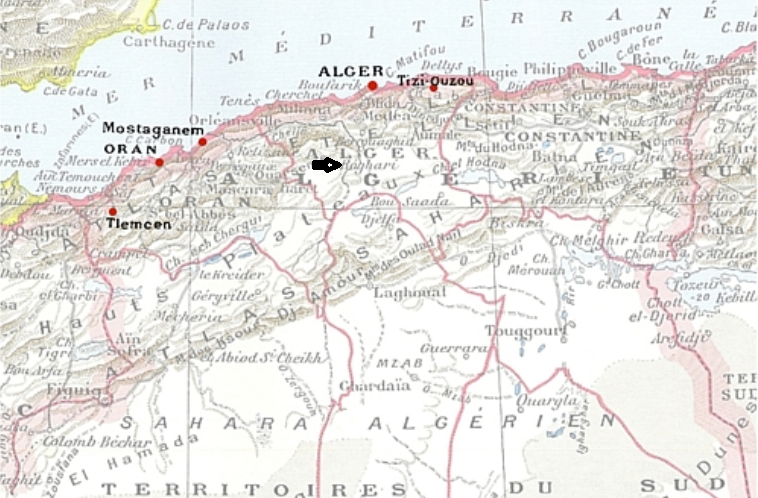 Mapa de situación del campo Morand en Boghari- Sur de Argel