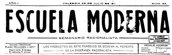 9HEADFORD: The history of the Modern Schools, en VVAA: Francisco Ferrer. His life, work and martyrdom. Francisco Ferrer Association, New York, 1910, p. 33. La fidelidad de la EMV a la línea educativa ferrerista es clara; empieza con Humanidad Nueva, 1907-1909, sigue por Escuela Moderna, 1910-1911, y llega hasta Humanidad, 1912. Ver, Lázaro: Las Escuelas Racionalistas en el País Valenciano. Ob. Cit, pp. 38 y ss; Lázaro: La Escuela Moderna de Valencia. Ob. Cit, pp. 77-79 y 89.