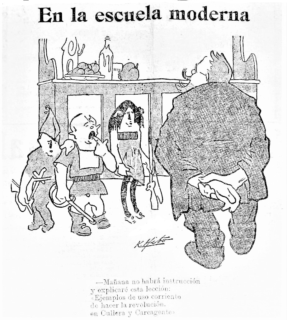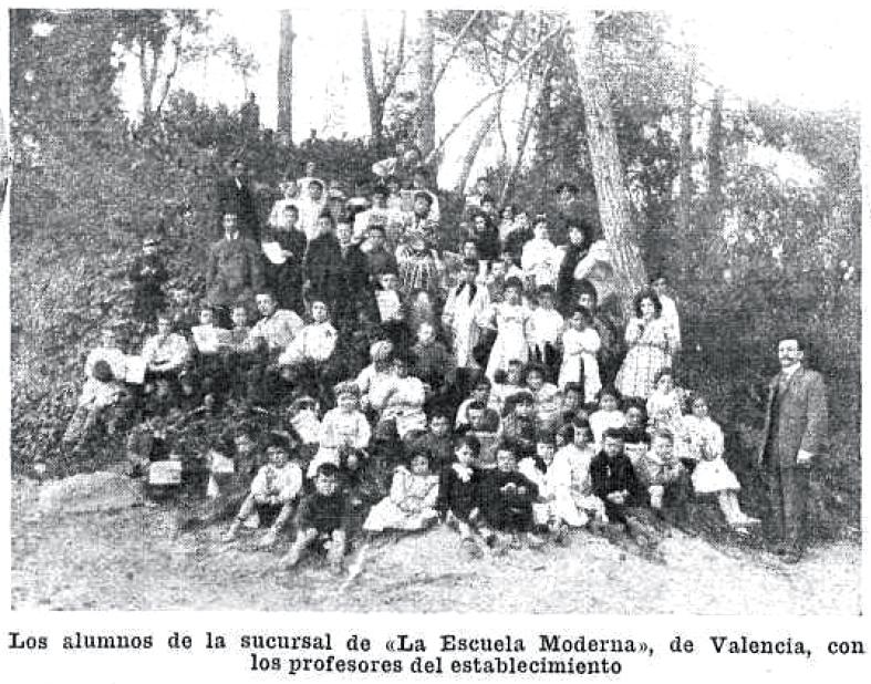 “..en Valencia, existió hasta hace poco, una Escuela Moderna; una de las varias Escuelas fundadas por aquel hombre abnegado que se llamó en vida Francisco Ferrer [..] A los varios años de abandonarla, mejor dicho de continuar mis estudios superiores, las damas catequistas consiguieron su clausura —según me contó su último director— pretextando que se daban en ella lecciones tendenciosas..”8