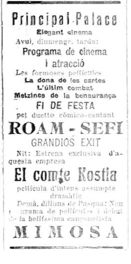 Mimosa en Principal Palace_La Publicitat 17-04-1927