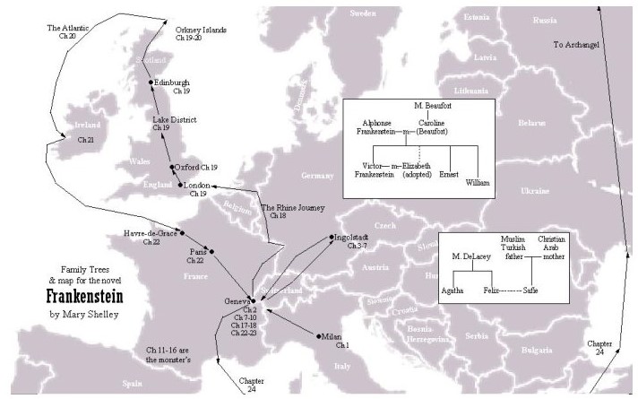 Que Frankenstein parezca un relato de viajes, podría explicarse por aquello de que el transporte por vía marítima era el único medio disponible para salvar grandes distancia. Sin embargo, esta no es, en ningún caso, la única razón por la que el Mar tiene tanta presencia en Frankenstein.