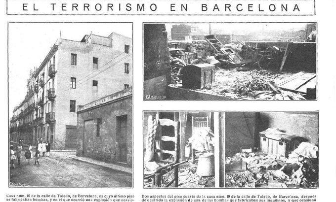 Però seguim amb els fets d’aquell dos de maig de 1921. Els veïns van veure com del quart pis del núm. 10 del carrer Toledo sortia gran quantitat de fum i gent amb les robes incendiades. Els primers bombers a arribar, van creure que es tractava d’un incendi fortuït, però, al cap de poc van comprovar que es tractava de líquid inflamable, per la qual cosa van donar part a la policia, que immediatament va traslladar la seva brigada especial, que es va fer càrrec de la situació.