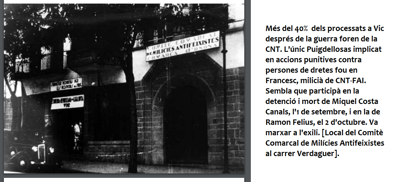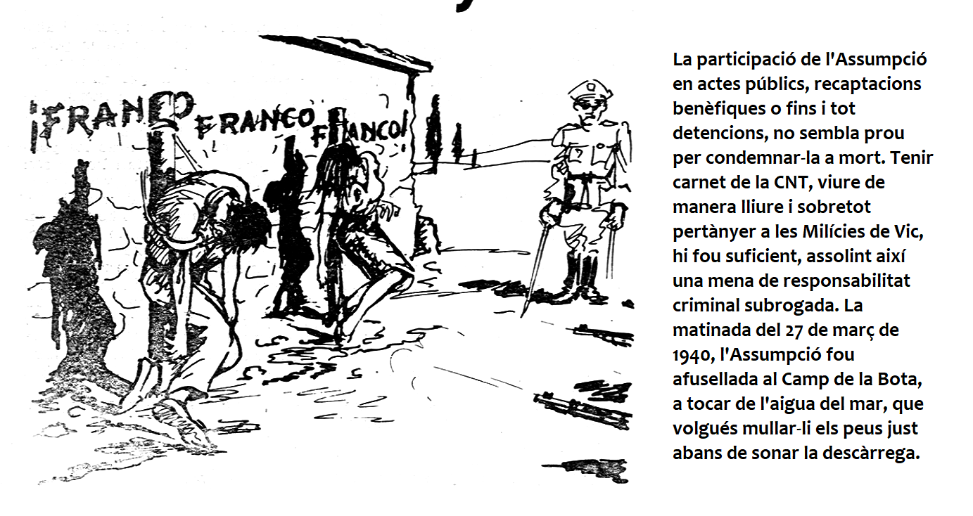 Encara manquen dades per completar la biografia de la vigatana Assumpció Puigdellosas, però les evidències trobades l’allunyen de la imatge d’anarquista perillosa que els feixistes pintaren d’ella; i d’altres que posen en dubte les acusacions que la portaren davant d’un escamot d’afussellament. Aquest treball naix de la col·laboració d’Alacant Obrera i Manel Aisa, qui ens va fer conèixer aquesta història d’una dona lliure de Vic.