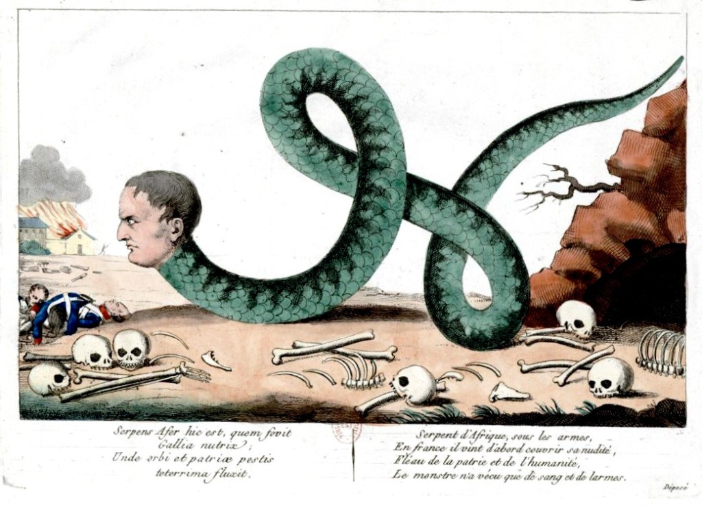 Para muchos, Napoleón se había transformado en un dictador republicano, arrogándose el papel de héroe colonialista que recorría el mundo con una misión civilizadora; pero que acabó domado y amarrado a la roca de la isla de Santa Elena, donde fue deportado en 1815. Ésta era más o menos la opinión de Percy Shelley en Feelings of a Republican in the fall of Bonapart, donde decía que tan solo era un pirata con galones. En verdad, Percy nunca le perdonó el asesinato a traición de Toussaint l’Ouverture, insurgente haitiano.